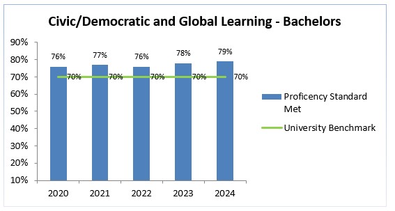 - Civic/Democratic and Global Learning recognizes higher education’s responsibilities both to democracy and the global community. Students engage in integration of their knowledge and skills by addressing and responding to civic, social, environmental, economic, equity, inclusion, and social justice challenges at local, national, and global levels.